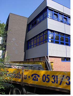 Verblendmauerwerk und Kerndämmung ersetzt. Die Bauarbeiten wurden planmäßig in den Sommerferien 2002 fertig gestellt. |