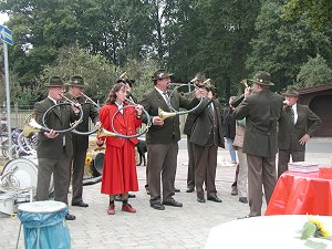 Bürgermeister Wilfried Hemme, Ortsbürgermeister Roland Winkel sowie Dipl.-Ing. Jürgen Meyer und Dipl.-Ing. Elisabeth Wittig, beide Planungsbüro Wittig (von links, stehend) ![]() ![]() Jagdhornbläser Meißendorf |